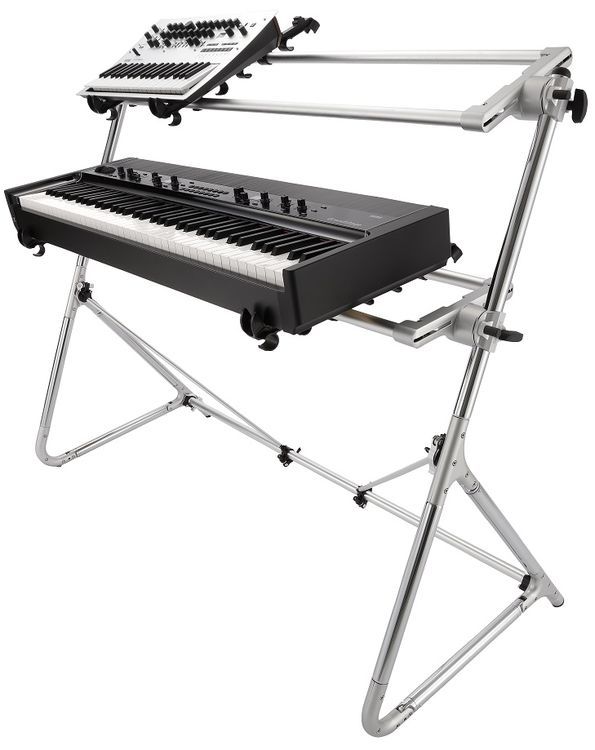 Dış düğme, kat(klavye rafı) yüksekliğini ayarlamanıza olanak tanır ve iç kol, açıyı dişliler olmadan serbest bir aralıkta ayarlamanıza olanak tanır. Ayarlanabilir yükseklik, oturarak veya ayakta performansa uyum sağlayabilir ve raf sabit üniteden kolayca ayrıldığından, prova sırasında standı istediğiniz yüksekliğe ayarlayabilir ve daha sonra, performans esnasında aynı ayarlara sahip olacağınızı bilerek söküp taşıyabilirsiniz. Ayrı satılan ek bir raf bağlantısı ekleyerek enstrümanlarınızı en rahat çalma açısına (örneğin alt enstrümanı düz tutarken üst enstrümanı hafifçe kendinize doğru eğerek) kolayca yerleştirebilirsiniz.
