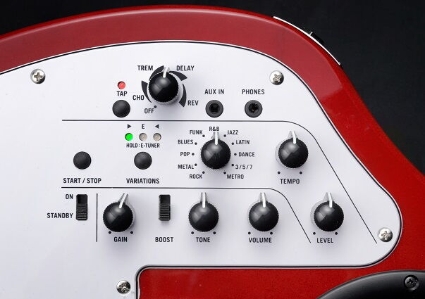 Gitar: PU SELECTOR, GAIN, BOOST on/off, TONE, VOLUME